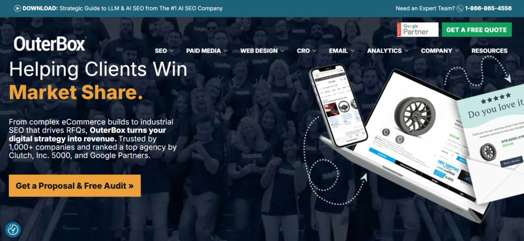 OuterBox has earned a strong reputation for its ecommerce SEO expertise. The agency helps online stores improve search visibility, product rankings, and revenue.