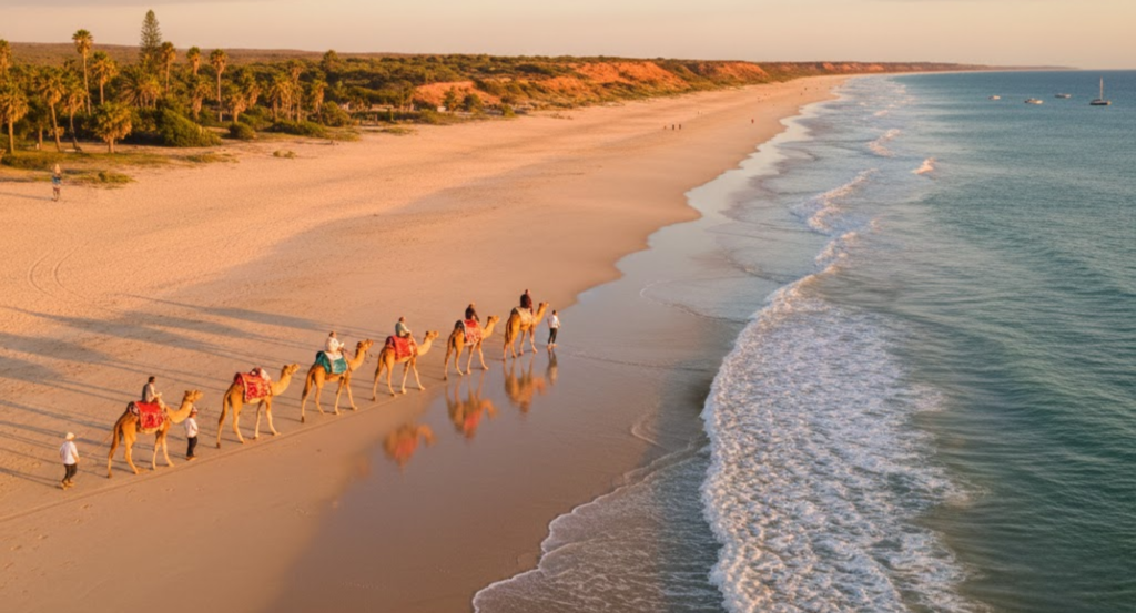 Cable Beach suits travelers looking for open landscapes, quiet beach walks, and dramatic sunsets. It is particularly appealing to those who prefer spacious beaches with fewer crowds and uninterrupted views of the Indian Ocean.