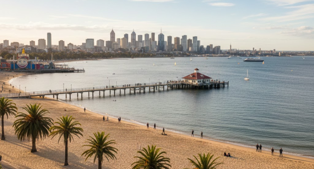 St Kilda Beach appeals to city travelers looking for a relaxed coastal break without leaving Melbourne. It is ideal for casual walks, cycling, and social beach visits rather than swimming-focused trips.