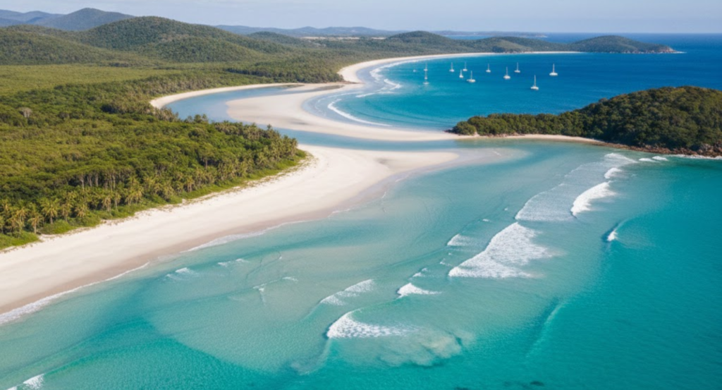 Whitehaven Beach is located in the heart of the Whitsunday Islands and is celebrated for its pure white silica sand, which remains cool even under strong sunlight. The beach is protected and largely untouched, giving it a calm and natural atmosphere that appeals to travelers seeking scenic beauty.