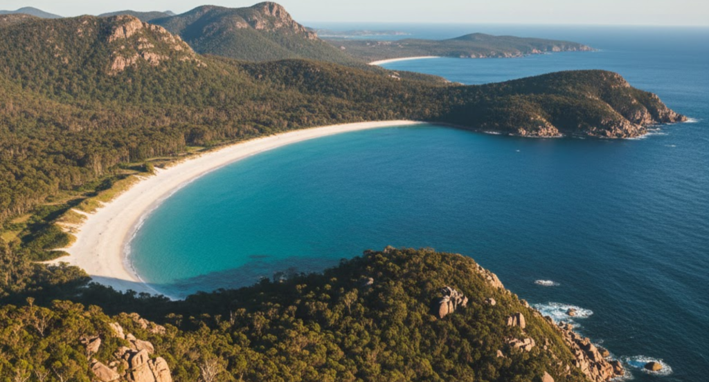 Wineglass Bay is set within Freycinet National Park and is often listed among the most beautiful beaches in Australia. Its curved shoreline and natural surroundings make it a favorite for nature-focused travelers.